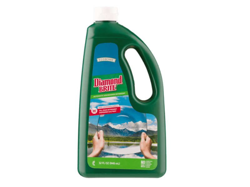 natural enzymes, Diamond Brite Gel Automatic Dishwasher Detergent leaves dishes, glasses, and silverware spotlessly clean without harsh fumes or residues.
