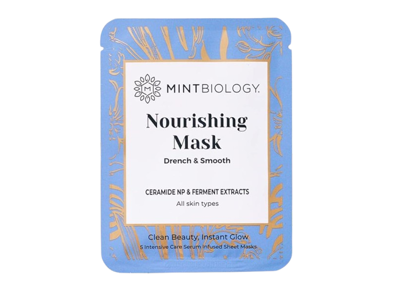 Mint Biology Drench & Smooth Nourishing Mask, Ceramide Np & Ferment Extracts, 0.85 fl oz/25 mL, 5 Count