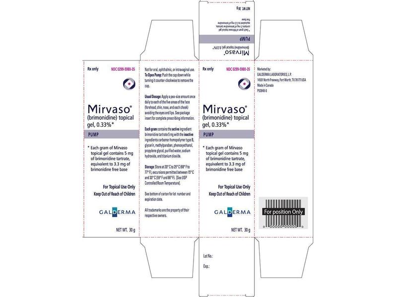 MIRVASO® (brimonidine) topical gel, 0.33% is the first and only FDA-approved treatment developed and indicated for persistent (nontransient) facial redness of rosacea. Facial redness is a common symptom of rosacea, a skin condition that affects an estimated 16 million Americans