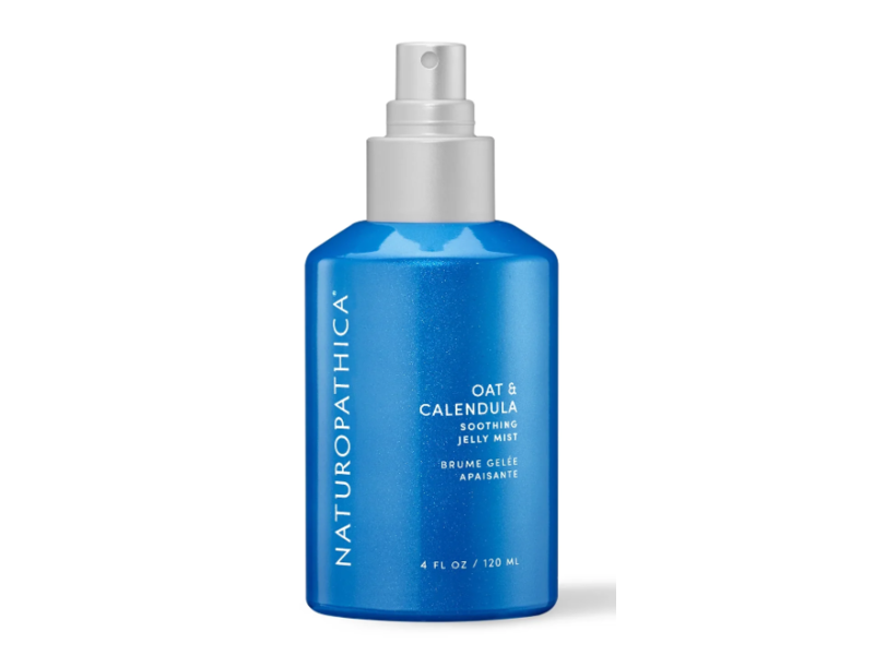 Naturopathica's Oat and Calendula Soothing Jelly Mist is enriched with calendula, hyaluronic acid and oats to bind moisture to the skin and calm redness. Spray directly on the face on to feel hydrated and relief from itchiness and irritated skin.