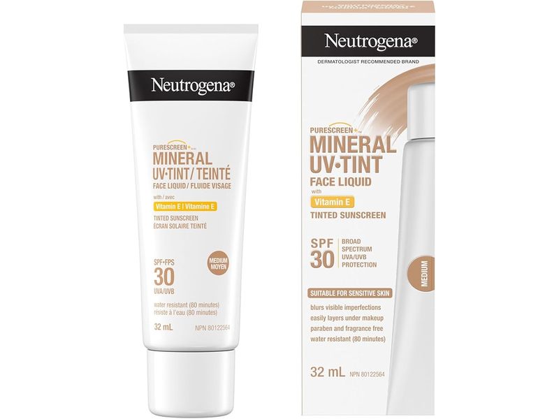 Neutrogena Purescreen+ Mineral UV Tint Face Liquid Sunscreen, SPF 30, Medium, 32 mL