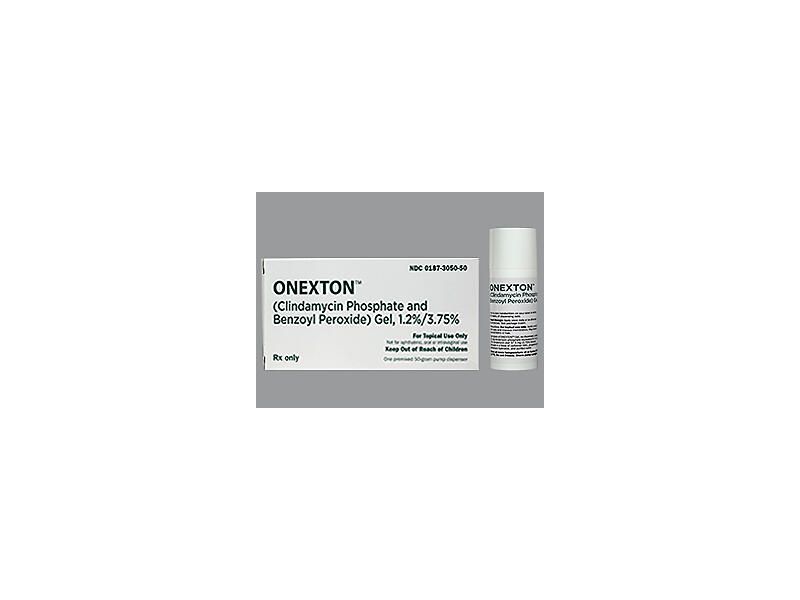 ONEXTON (clindamycin phosphate and benzoyl peroxide) Gel, 1.2%/3.75% is a prescription medicine used on the skin (topical) to treat acne vulgaris in people 12 years and older.