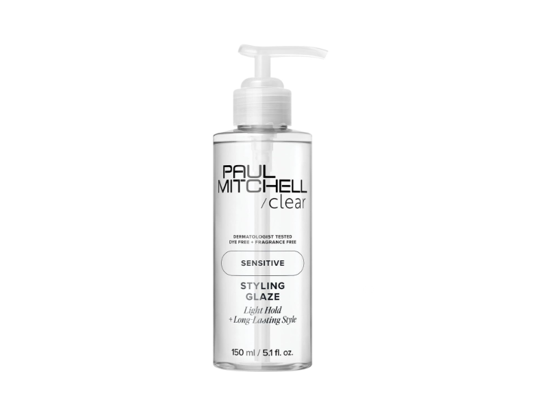 Paul Mitchell Styling Glaze delivers soft hold and memory that can be reactivated with water or heat, without irritating a sensitive scalp or skin.