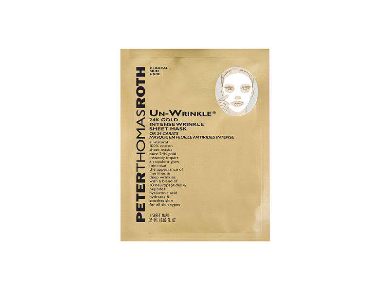 Premium, all-natural 100% cotton sheet mask pre-soaked with potent anti-aging actives to help minimize the appearance of fine lines and deep wrinkles - instantly and over time. This single-use treatment adheres to the shape of the face, infusing skin with a powerful blend of 18 age-fighting neuropeptides and peptides, pure 24K gold and hyaluronic acid.