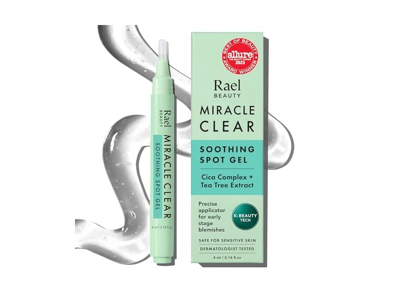 Rael's Miracle Clear Soothing Spot Gel is a clear, quick-drying formula for active and early-stage blemishes. With a clickable applicator and hygienic silicone brush, it's perfect for on-the-go use.