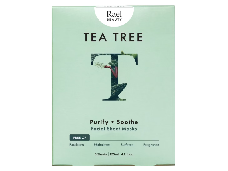 Rael Beauty Purify + Soothe Facial Sheet Masks, Tea Tree, 4.2 fl oz/125 mL, 5 Count