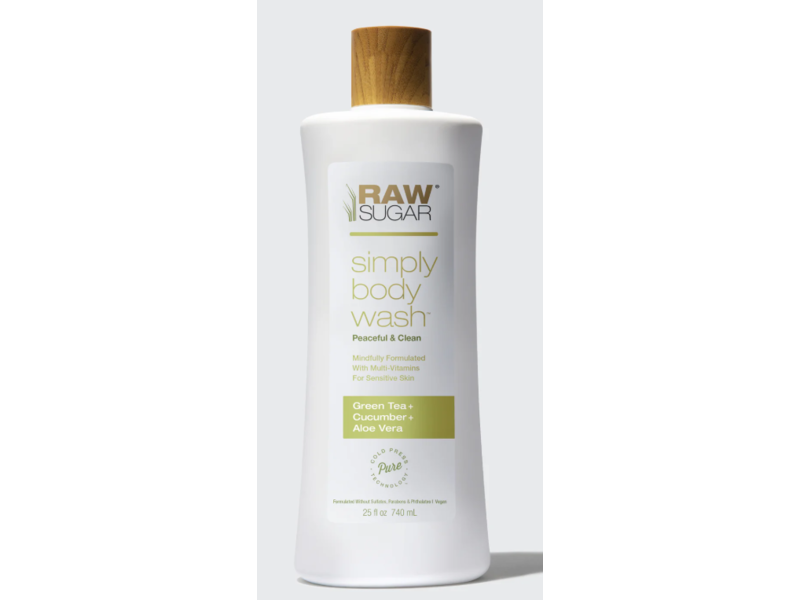 Raw Sugar Simply Body Wash, Green Tea + Cucumber + Aloevera, 25 fl oz/740 mL
