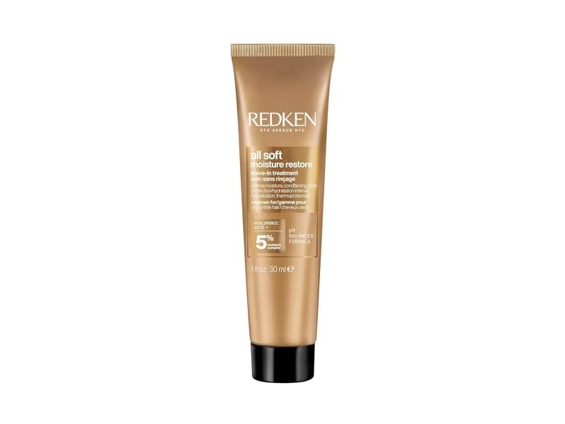 Redken's All Soft Moisture Restore Leave-In Treatment with Hyaluronic Acid adds immediate shine & conditioning for a healthy looking and feeling of hair. It hydrates deeply and retains moisture lost by humidity, heating tools and color services.