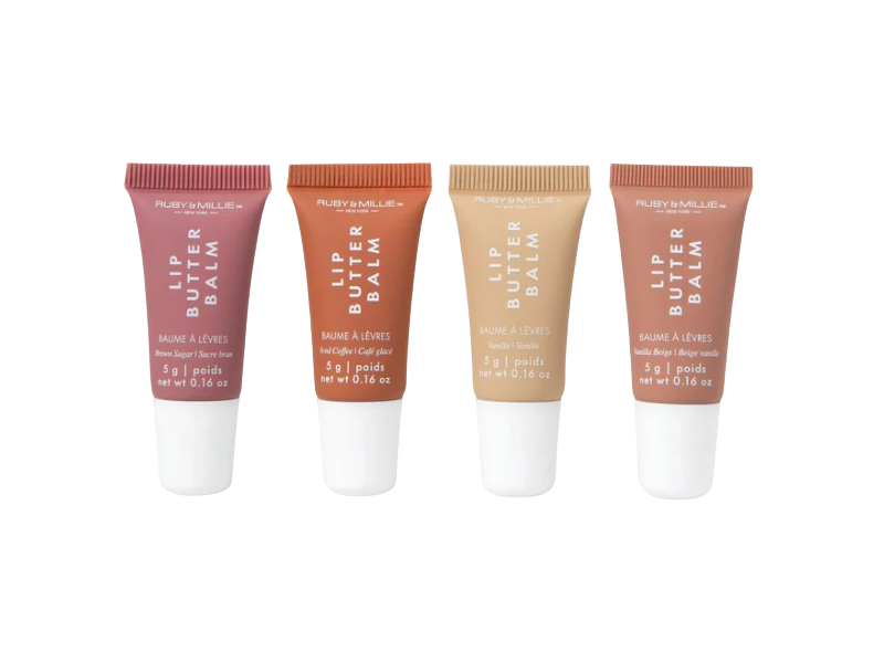 Ruby & Millie The Mini Lip Butter Balm Set, Brown Sugar, Iced Coffee, Vanilla & Vanilla Beige, 0.16 fl oz/5 g