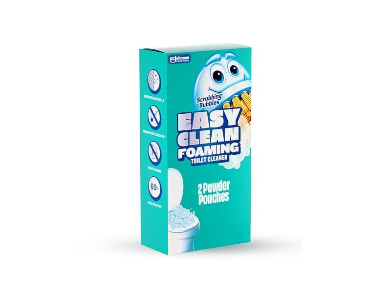 tear open one pouch of the foaming toilet bowl cleaner and watch as the bubbles work to remove limescale and helps loosen toilet stains. For stubborn stains, use a brush