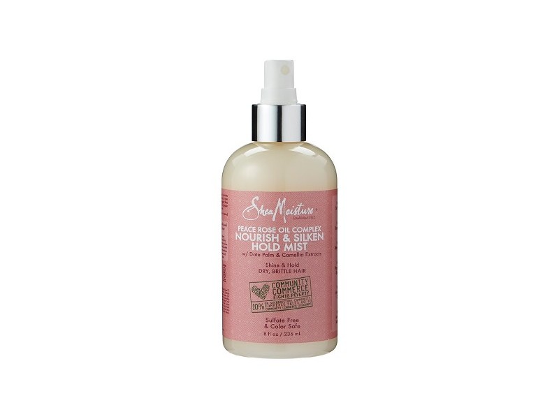 SheaMoisture Peace Rose Oil Complex Nourish & Silken Hold Mist boosts shine and provides medium hold with movement. The romantic essence of roses helps refresh hair between washing. Certified organic Shea Butter blends with proprietary Peace Rose Oil Complex in a shine boosting formula that eliminates flyaways.