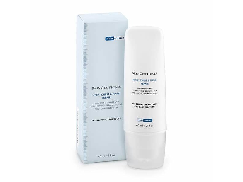 Specifically designed for the skin quality and concerns of forgotten body areas frequently exposed to the sun, Neck, Chest & Hand Repair delivers dual brightening and restoration action. Powerful skin brightening agents fade the look of accumulated damage and age spots while improving the appearance of texture.
