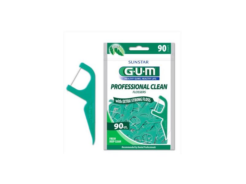 GUM® Professional Clean Flossers have easy-to-control and ergonomically shaped handles preloaded with GUM® Eez-Thru® dental floss. GUM® Eez-Thru® dental floss has a satin-like finish that is extremely soft and gentle and resists shredding, breaking and sagging. The floss easily slides into position under the gumline and then removes the dental plaque not removed by regular toothbrushing.