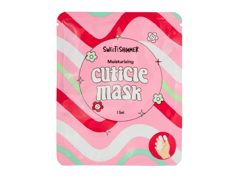 Sweet & Shimmer moisturizing cuticle mask hydrates, softens, and nourishes hand cuticles.