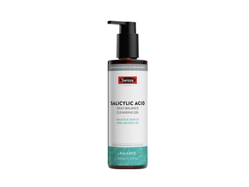 Swisse Skincare Salicylic Acid Daily Balance Cleansing Gel is a low-foaming, non-stripping cleanser that is scientifically formulated to reduce the appearance of blackheads, refine pores, and help manage acne-prone skin, while removing makeup and impurities.
