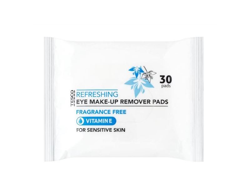 Tesco refreshing eye make-up remover pads are fragrance free and have been specially formulated to gently ease away make-up from the face and eyes (including waterproof make-up) without upsetting the skin’s delicate balance.  Suitable for sensitive skin. No colour, no perfume, just smooth feeling skin.