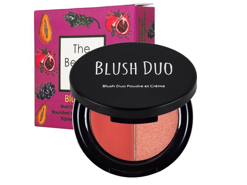 A fragrance and mineral oil-free powder and cream blush duo, nourished with kale, aronia berry, pomegranate and papaya to give you a healthy tropical glow. Comes in a travel-friendly compact - perfect for on-the-go touchups.  "Papaya Don't Preach" is a combination of warm wearable coral-peach cream and powder shades