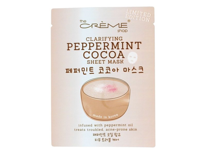 This Peppermint Cocoa Holiday Essence Sheet Mask is infused with real Peppermint Oil and Dark Cacao. It is formulated to clarify skin, combat inflammation, treat oiliness, hydrate, and brighten the skin. Soothed skin makes for a cozy holiday season.
