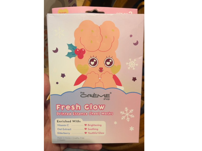 The Creme Shop Fresh Glow Printed Essence Sheet Masks, Vitamin c + Oat Extract & Elderberry, 3 Count