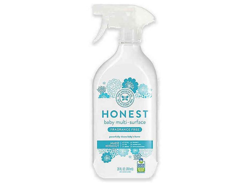 The Honest Baby Multi-Surface Cleaner uses a powerful plant-based formula that is hypoallergenic and designed to cut through dirt while being safe for sensitive skin. The fragrance-free cleaner is perfect for high chairs, bathtubs, and floors.