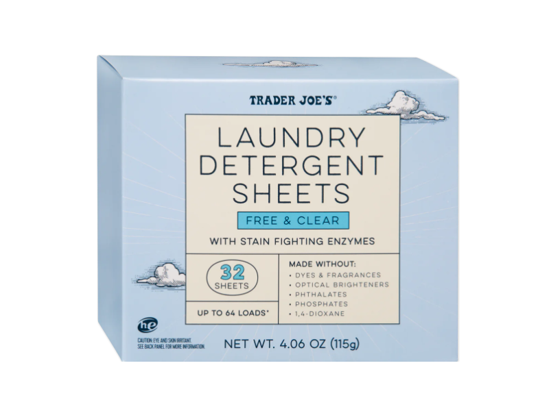 Trader Joe's Laundry Detergent Sheets, Free & Clear, 64 Loads, 4.06 oz/115 g, 32 Count