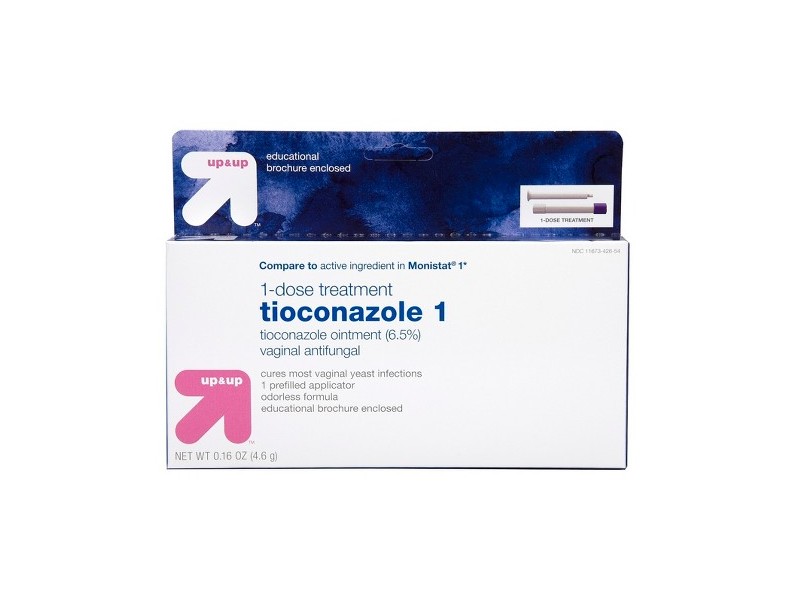 Up&Up Tioconazole Ointment 6.5 Percent is a vaginal antifungal treatment that cures most vaginal yeast infections. Just one dose treatment with the convenient pre-filled applicator will provide some relief within one day and complete relief of symptoms within 7 days. Soothing feminine care, this vaginal medicine in one ready-to-use convenient, pre-filled ointment applicator relieves irritation from yeast infections. The vaginal ointment provides feminine care in an odorless formula for discreetness. The plastic applicator is disposable. Up&Up Tioconazole Ointment 6.5 Percent offers yeast infection treatment in a single dose.
