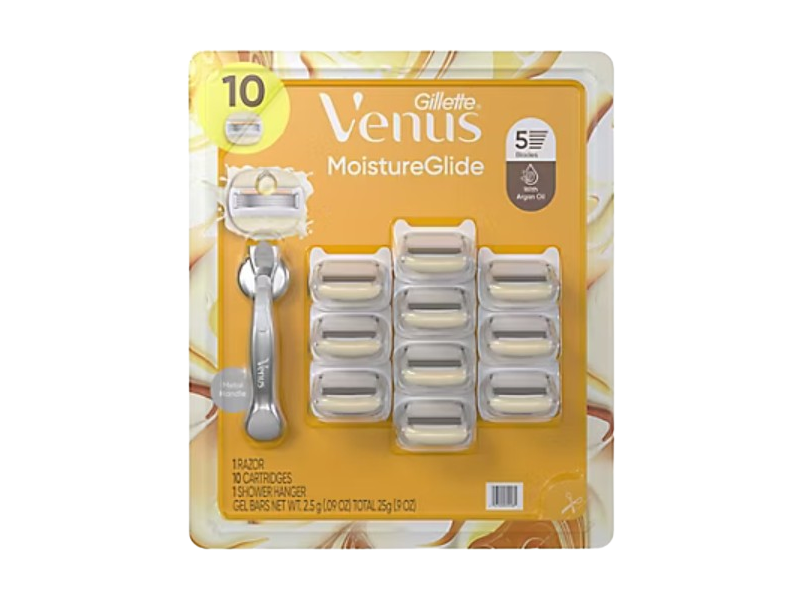 The Venus Moistureglide Women's Razor lathers and shaves, revealing visibly smooth & moisturized skin without shaving cream.