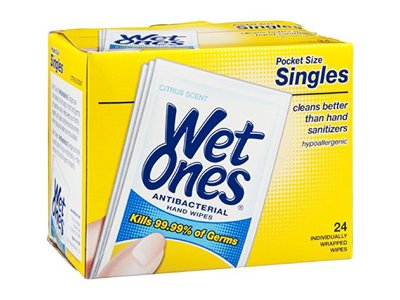 Wet Ones Antibacterial Hand Wipes Pocket Size Singles, Tropical Splash, 24 count (3 pack)